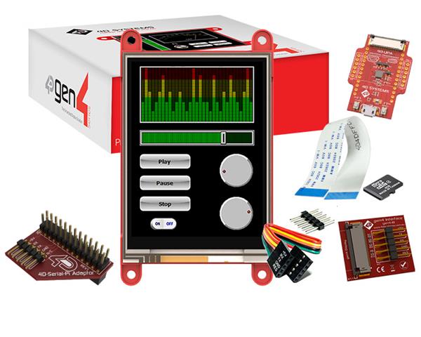 4D Systems SK-gen4-32PT-PI Starter Kits Starter Kit ສໍາລັບ gen4-uLCD-32PT-PI ມີ 4D Serial Pi Adaptor, 4D-UPA, 4GB Industrial microSD Card, ສາຍສັ້ນ FFC 150 mm, ສາຍສັ້ນ 5 ທາງ ຜູ້ຍິງ-ຜູ້ຍິງ ຮອບດ້ວຍຕົວແປຜູ້ຊາຍ-ຜູ້ຊາຍ