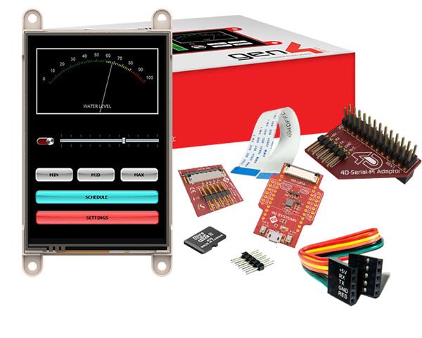 4D Systems SK-gen4-35D-PI ຊຸດເລີ່ມຕົ້ນເຄື່ອງມືພັດທະນາຈໍສະແດງສຳລັບ gen4-uLCD-35D-PI ມີ 4D Serial Pi Adaptor, 4D-UPA, ບັດ microSD ອຸດສາຫະກຳ 4GB, ສາຍ FFC 150 mm, ສາຍຮິບບອນ 5 ທາງ ຜູ້ຍິງ-ຜູ້ຍິງ ມີຕົວແປຜູ້ຊາຍ-ຜູ້ຊາຍ