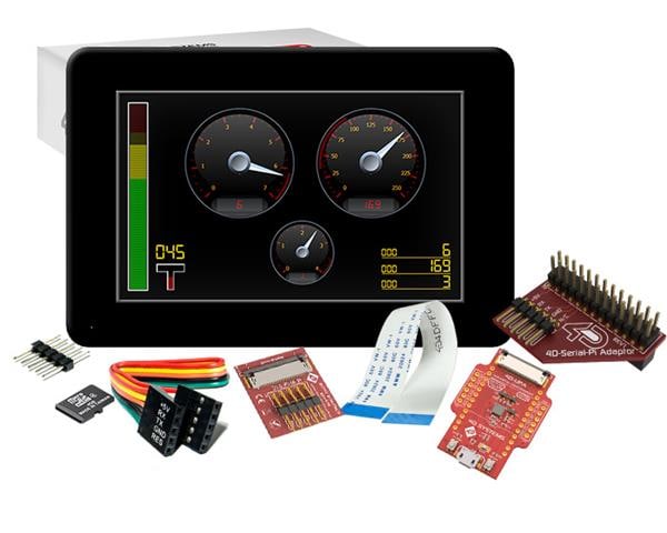 4D Systems SK-gen4-50DCT-CLB-SB-PI ຊຸດເຄື່ອງມືພັດທະນາຈໍແສງສະແດງເລີ່ມຕົ້ນສໍາລັບ gen4-uLCD-50DCT-CLB-SB-PI ມີ 4D Serial Pi Adaptor, 4D-UPA, ບັດ microSD ອຸດສາຫະກຳ 4GB, ສາຍ FFC 150 mm, ສາຍ ribbon 5 ທາງ ຜູ້ຍິງ-ຜູ້ຍິງ ມີ adaptor ຜູ້ຊາຍ-ຜູ້ຊາຍ