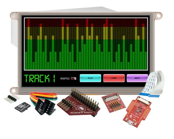 4D Systems SK-gen4-70DT-PI Starter Kits Starter Kit ສໍາລັບ gen4-uLCD-70DT-PI ມີ 4D Serial Pi Adaptor, 4D-UPA, 4GB Industrial microSD Card, ສາຍສັ້ນ FFC 150 mm, ສາຍຮີບບອນ 5 ທາງ ຜູ້ຍິງ-ຜູ້ຍິງ ມີ adaptor ຜູ້ຊາຍ-ຜູ້ຊາຍ