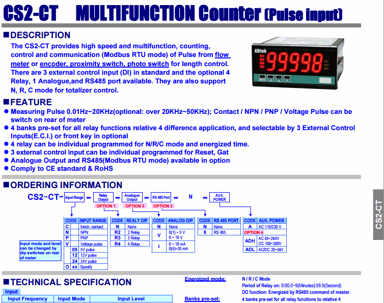 ● Measuring Pulse 0.01Hz~20KHz(optional: over 20KHz~50KHz); Contact / NPN / PNP / Voltage Pulse can be