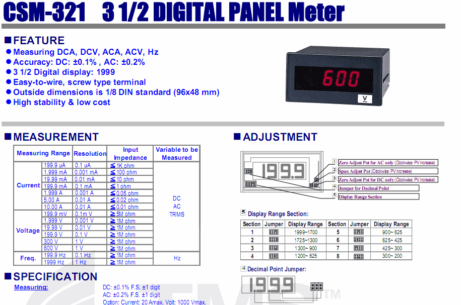 Adtek CSM-321 3 1/2 Digital Panel Multimeter (AC/DC/Hz) | EMIN.COM.LA