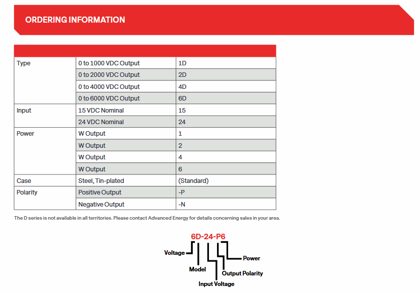 Example for a 15 VDC, output 6000 V, 1 mA model: