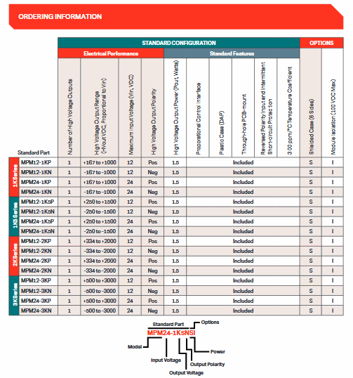 negative polarity models = -HVout: -334 ~ -2000VDC