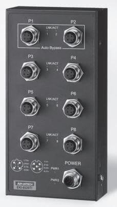 Advantech EKI-6528TI-AE ອຸປະກອນສະຫນັບສະຫນູນ Ethernet ບໍ່ມີການຄວບຄຸມ EN50155 8xM12 Unmanaged Switch w/ auto b | EMIN.COM.LA