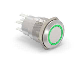 Alcoswitch - TE Connectivity 7-2213764-3 ປຸ່ມກົດສະຫນອງ AV19 DPL 5A FIX RING LED ສີຂຽວ 12V | EMIN.COM.LA