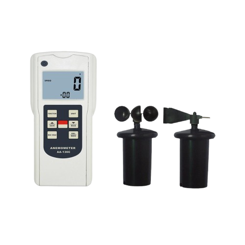 Sensor: Air Velocity/Flow Sensor: Conventional Angled Vane Arms With Low-Friction Ball Bearing; Direction Probe: -; Temperature Sensor: Precision Thermistor