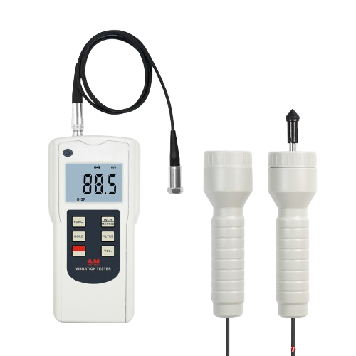 Accessories: Main Unit, 3-Axis Piezoelectric Accelerometer, Powerful rare earth magnet, Stinger probe (Cone), Stinger probe (Ball), Carrying Case, Operation Manual; Optional: Headphones, USB Cable & Software (See Page 4), Bluetooth Adapter & Software (See Page 4)