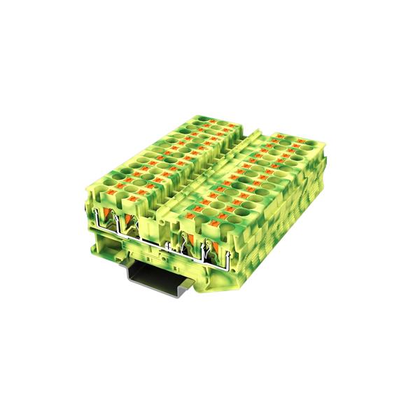 Amphenol Anytek APTS044PEYG00G ບລັອກຕິດຕາມແຖວ DIN Rail Terminal Block APT 4mm2/2-2 PE YG ຂໍ້ຕໍ່ດິນ Ground terminal ຊັ້ນດຽວ, 2in-2out ເຫຼືອງ-ຂຽວ Yellow-Green