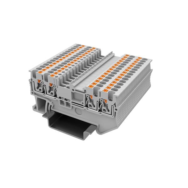 Amphenol Anytek APTS154SDGY00G ບລັອກຕິມເນີລບຣິດ DIN Rail APT 1.5mm2/2-2 Feed-through terminal block ຊັ້ນດຽວ, 2in-2out ສີເທົາ