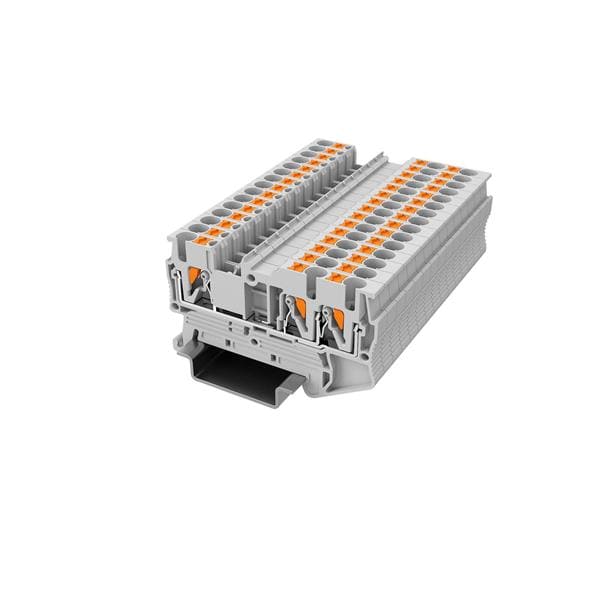 Amphenol Anytek APTS253SDGY00G ບລັອກຕິມເນີລທາມ DIN Rail APT 2.5mm2/1-2 Feed-through terminal block ຊັ້ນດຽວ, 1in-2out ສີເທົາ