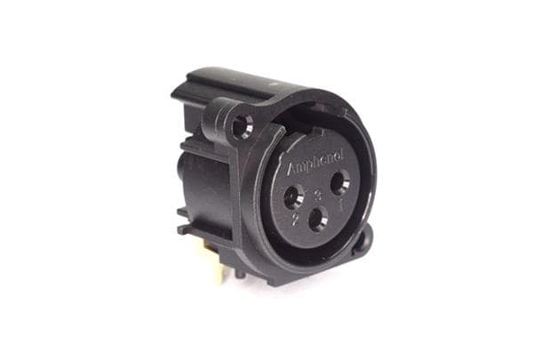 Amphenol Audio AC3FAHL1-AU-PRE ຕົວເຊື່ອມຕໍ່ 3 ໂພນ XLR ຜູ້ຍິງ ຕິດຕັ້ງບ້ານ A ປະເພດ ຕິດຕໍ່ທອງ ສີດຳ ຕັ້ງຢູ່ພາຍໃນ PCB ທົງແກ້ວ