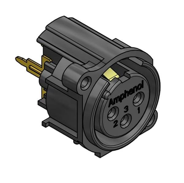 Amphenol Audio AC3FAVL2-AU-PRE ຕົວເຊື່ອມຕໍ່ 3 ໂພນ XLR ຜູ້ຍິງ ຕິດຕັ້ງບ້ອງພວງ A ປະເພດ ຕິດຕໍ່ທອງ ພື້ນຜິວດຳ ບົດສະແດງ PCB ຕັ້ງຕົວ