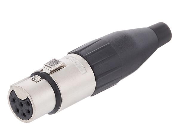 Amphenol Audio AC6AFJ ຕົວເຊື່ອມສາຍສະເພາະ 6 ໂພນ XLR ຜູ້ຍິງ ຕົວເຊື່ອມສາຍສະເພາະ ຕິດຕໍ່ດ້ວຍການຂັດຂວາງ ຕົວຢືດສາຍຂະໜາດໃຫຍ່ ສີນິເຄວີສົດ