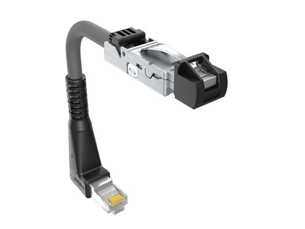 Amphenol Canada DRPC42A009B10 Modular Connectors / Ethernet Connectors Cable, Cat6A, Industrial RJ45, straight exit to R/A standard RJ plug (40mm), 24AWG, 1.0m, gold flash
