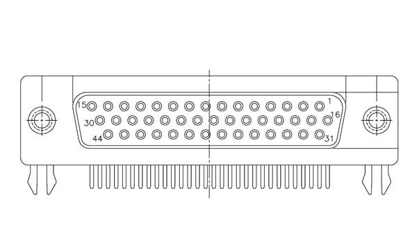 Amphenol Commercial Products 17EBH044SAM210 ຂໍ້ມູນສູງ D-Sub Connectors RA HI DENSITY 44P F #4-40 UNC THRD | EMIN.COM.LA