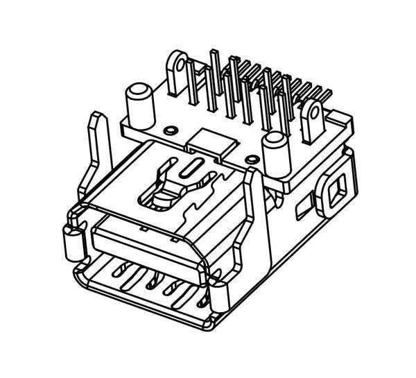 Amphenol Commercial Products G46M2013201ATWEU Mini-Displayport Mini DISPLAY PORT 20POS RECEPTACLE ມຸມຂວາ, ຄວາມສູງກາງ 3.2mm, ປະເພດ Hybrid (Dip+SMT), LCP, ສີດຳ, ການຄຸງການ 15U" plating, ບັນຫຼຸດ Tape and Reel