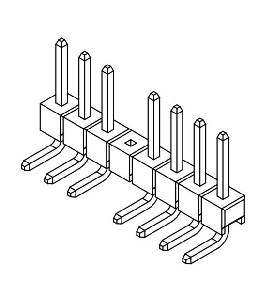 Amphenol Commercial Products G801LQ3000255EU ພິນສະຕຣິບພິນເຮດເດີ 2.54mm Pitch R/A DIP,1x8Pin,5u" Gold,LCP,6.0mm*2.54mm*3.0mm,Removed#5Pos