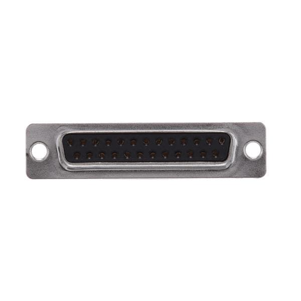 Amphenol Commercial Products L77DB25SV Receptacle Dsub, Machined Pin 7.5A, Straight PCB Thru Hole, Cnt Length=2.4mm (.095in), Cnt =1.02mm (.040in), 25 Socket, Bright Tin Shell, Flash Gold, 3.1mm (.122in) Clear Hole, Without Standoff&Boardlock