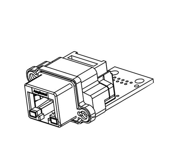 Amphenol Commercial Products MRJR6C8001 ມອດູ່ນລີ ຮັກກິດ RJ45, ພີ່ນ 2, ມີເຟຣຣາຍດ, ມຸມຂວາໃນ PCB ມີ RJ45 ມາດຕະຖານຢູ່ອີກດ້ານຂອງ PCB