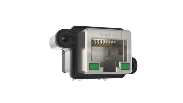 Amphenol Commercial Products MRJR9385MC ຕູ້ຕໍ່ແບບ Modular / ຕູ້ຕໍ່ Ethernet Harsh RJ45, Cat6A, IP67, ມຸມຂວາ, ມີໄຟ LED, ການດັບເກັບ Metric