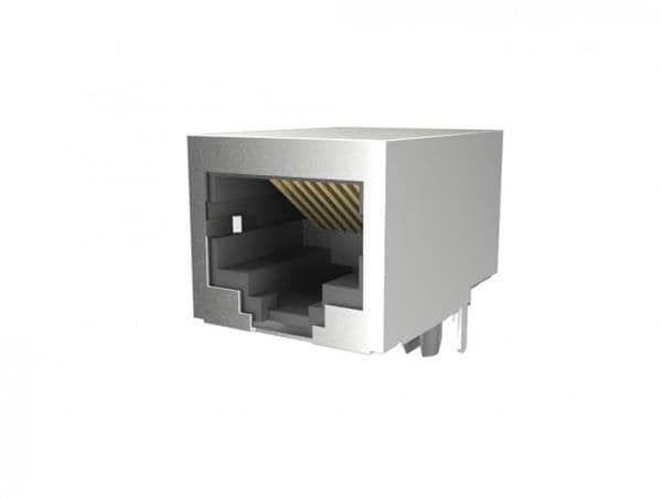Amphenol Commercial Products RJE091881110H ຕົວເຊື່ອມຕໍ່ແບບແມ່ນລະບົບ / ຕົວເຊື່ອມຕໍ່ Ethernet ພອດເດີດຽວ Modular Jack - ມຸມຂວາ, ປຸ່ມລົງ, ຕົວເຊື່ອມຕໍ່ຂາຍເຂົ້າ 8P8C, ມີການປົກປ້ອງ