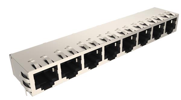 Amphenol Commercial Products RJE09888A410 ຕູ້ຕໍ່ແບບ Modular / ຕູ້ຕໍ່ Ethernet ຮູບແບບມາດຕະຖານ CAT5 RJ45 - 8 ພອດ ບໍ່ມີ LED, ປົກກັນສະຫນັບສະຫນູນດ້ວຍ EMI Tabs