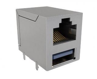 Amphenol Commercial Products RJE361882103 ມົດູເລີ ສແຕັກ 8P8C RJ ຜ່ານ USB ປະເພດ A 2.0 Shield | EMIN.COM.LA