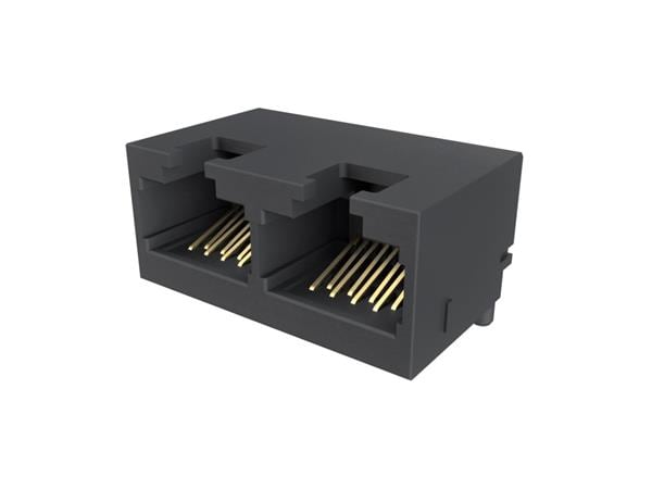 Amphenol Commercial Products RJE3B2880402N ປຸ່ມຕໍ່ເຊື່ອມມົດູເລີລ ປຸ່ມຕໍ່ເຊື່ອມມົດູເລີລ - 2P 8P8C, RA, CAT6, SMT, ພອດເດັດ, ບໍ່ມີການປ້ອງກັນ, ມີຂາຍືບຢູ່, ບໍ່ມີໄຟ LED