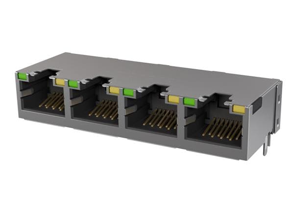 Amphenol Commercial Products RJE484886141 ຕົວເຊື່ອມ Low Profile CAT5E RJ45 - 4 ພອດ ມີ LED, ປົກກັນສະຫນັບສະຫນູນໂດຍບໍ່ມີແທບ EMI