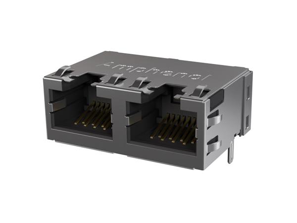 Amphenol Commercial Products RJE492881101 ຕົວເຊື່ອມ Low Profile CAT6 RJ45 - 2 ພອດ ບໍ່ມີ LED, ປົກກັນສະຫນາມດ້ວຍ EMI Tabs | EMIN.COM.LA