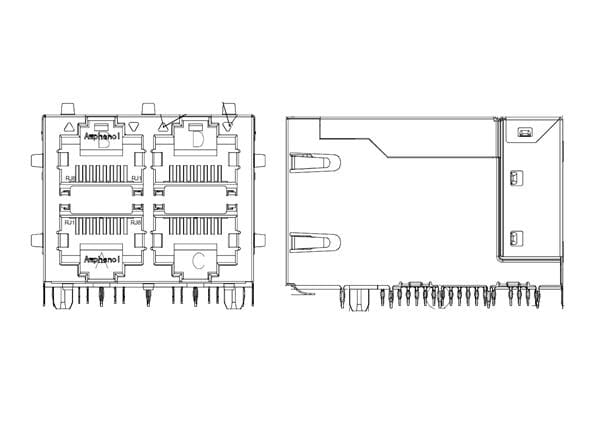 Amphenol Commercial Products RJMG322DN11E3ER ມັກເນຕິກ ຈແກກ 2X2 10G, press fit | EMIN.COM.LA