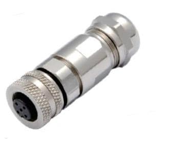 Amphenol Industrial HDM12PF04DSTMC Straight MaxM12, ປລັກສະຕຣີທຜູ້ຍິງ, 4 ຕຳແໜ່ງຕິດຕໍ່ປລັກຜູ້ຍິງ, ລະຫັດ D, ຕຳແໜ່ງການຄຣິມ, ບໍ່ມີຝາປອງຝຸ່ນ, ສອດຄອງ RoHS