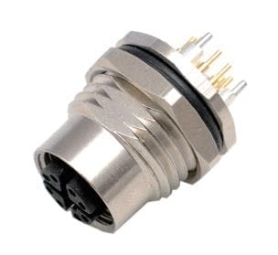 Amphenol Industrial HDM12RF08ASTMC Straight MaxM12, ນຸ່ມກະແຈບຜູ້ຍິງບົດບົດ, 8 ຕົວຕິດຕໍ່ປະຕູຜູ້ຍິງ, ລະຫັດ A, ຕົວຕິດຕໍ່ການບັງກັບ, ບໍ່ມີຝາປອດຝຸ່ນ, ສອດຄອງ RoHS