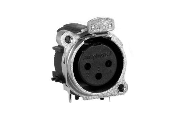 Amphenol SINE Systems AC3FBH2-AU-PRE XLR Connectors 3 Pole XLR Female Chassis Mount BType Nickel Finish GoldPlate Contacts Horiz PCB