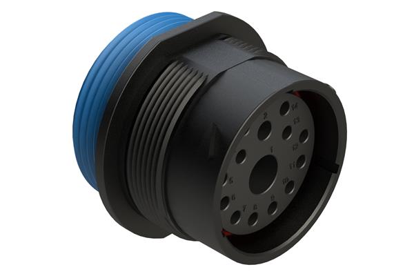 Amphenol SINE Systems AHDP04-24-14SR-WTA ຕົວເຊື່ອມຕໍ່ 14 ຕຳແໜ່ງ Receptacle, Socket, Shell Size 24, Reduced Diameter Seal (ສີຟ້າ), Wide Thread Adapter