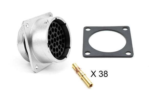 Amphenol SINE Systems RT002238SNH-K ຊຸດຕິດຕໍ່ສາຍ ຊຸດຮັບສາຍ, ຂອງມຸມສີ່ແຫ່ງ, 38 ຕໍ່ຕຳແໜ່ງ, ຍິງ, ຂະໜາດເປັນເລກ 22, ມີຕິດຕໍ່ທອງຂັດ, ຂະໜາດ 16 (18-16AWG), ກັດຊະຕ໌