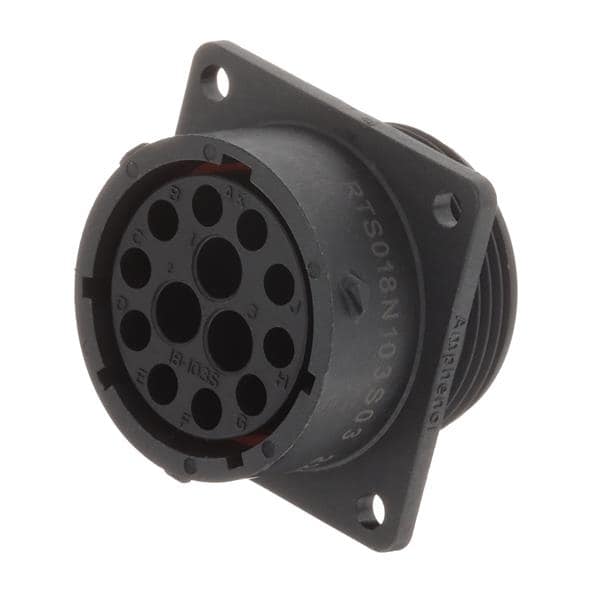 Amphenol SINE Systems RTS018N103S03 ຕົວເຊື່ອມຕໍ່ຮັບ, ຂອງມຸມສີ່ແຂນ, 13 (10+3 COAX) ຕຳແໜ່ງ, ຍິງ, ຂະໜາດຮູບເປັນເປັນ 18, ມີຢາງຊິລິໂກນ