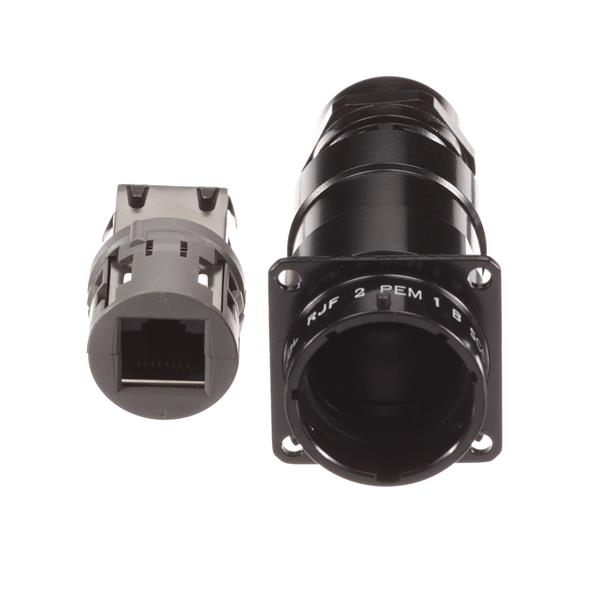 Amphenol Socapex RJF2PEM1BSCC ຮອບຮູບ RJ Fld Inln Rcpt Mtl Backshell RJ45 ສີດຳ | EMIN.COM.LA