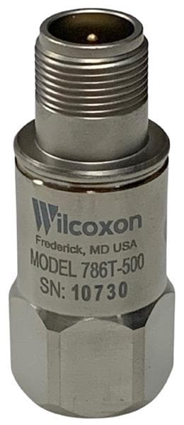 Amphenol Wilcoxon 786T-500 Acceleration Sensor Modules Top exit, high sensitivity, low frequency sensor, dual output: acceleration, 500 mV/g, +/-5% sensitivity tolerance; temperature, 10mV/C (2 to 120C), 3 pin MIL-C-5015 connector