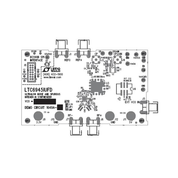 Analog Devices DC1649A-A ຕົວສ້າງຄວາມຖືກຕ້ອງຄວາມຖືກຕ້ອງຄວາມຖືກຕ້ອງ LTC6945 Demo Ultralow Noise and Spurious 6GHz Integer-N Synthesizer, VCO=902-928Hz, (Req DC590)
