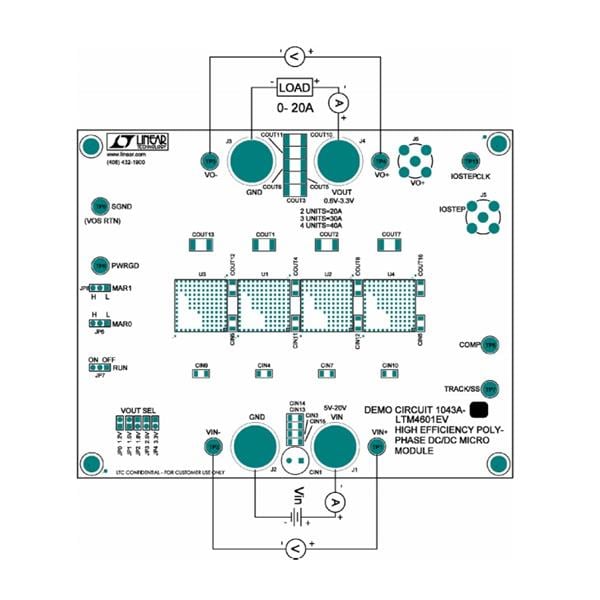 Analog Devices DC1043A-B ບົດທົດສອບ Voltage Regulator - Switching Regulator LTM4601 - 30A Paralleled Poly | EMIN.COM.LA