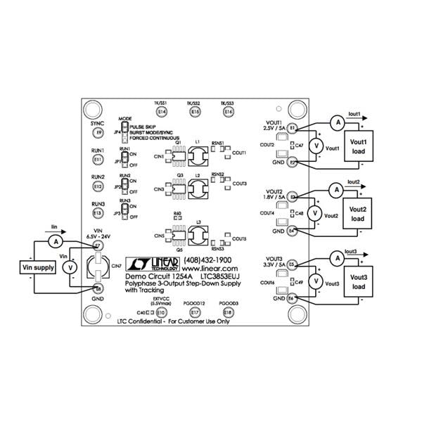 Analog Devices DC1254A ບົດທົດສອບຕົວຄວບຄຸມແຮງດັບໄຟຟ້າ - ຕົວຄວບຄຸມແຮງດັບໄຟຟ້າປ່ຽນແປງ LT3853EUJ - 6.5V < VIN < 24V | EMIN.COM.LA