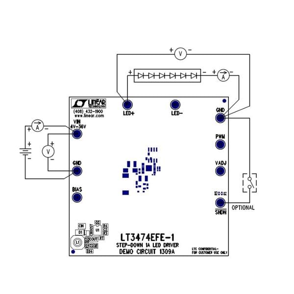 Analog Devices DC1309A ບອດສະແດງ LT3474EFE-1 - ຄວບຄຸມ LED ລະດັບລົດ 1A | EMIN.COM.LA
