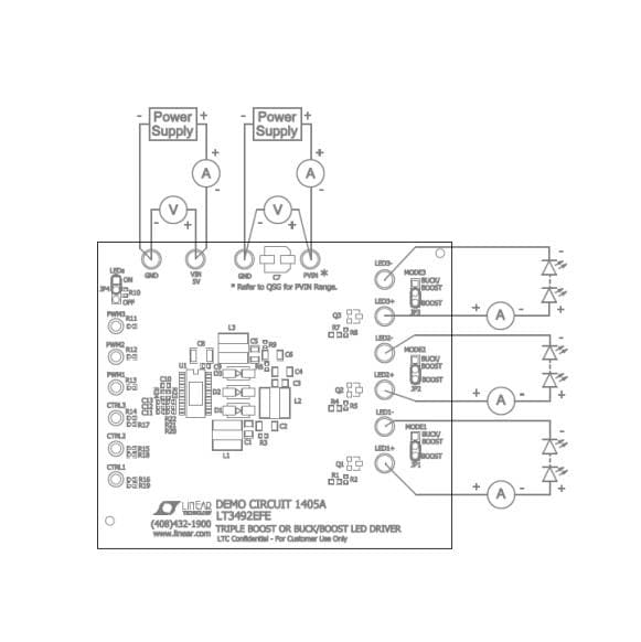 Analog Devices DC1405A ບອດສະແດງ LT3492EFE Demo Board - Triple Output LED | EMIN.COM.LA