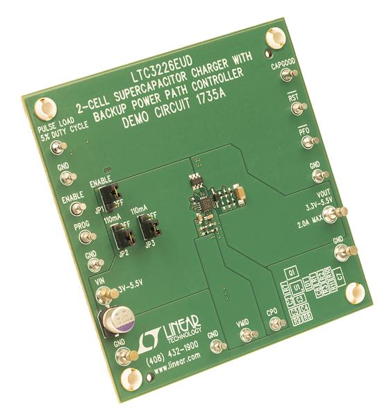Analog Devices DC1735A ບອດທົດລອງຕິດຕໍ່ໄຟ Supercap Charger LTC3226EUD ? 2-Cell Supercap | EMIN.COM.LA