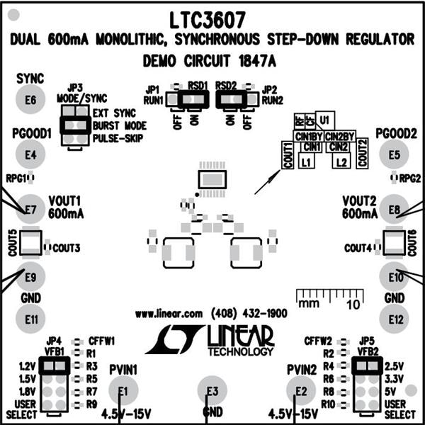 Analog Devices DC1847A ບົດທົດສອບຕົວຄວບຄຸມແຮງແຟງ - ຕົວຄວບຄຸມສະຫວັດ LTC3607EMSE Demo Board - 4.5V = VIN = 15 | EMIN.COM.LA