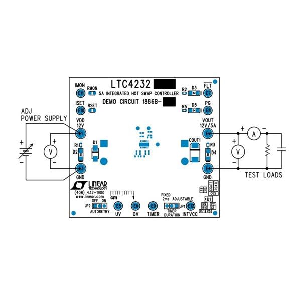 Analog Devices DC1886B-B ບົດທົດສອບຄວບຄຸມແຮງດັບສະຫນາມ Hot Swap Voltage Controller LTC4232IDHC-1 - 5A Integrated | EMIN.COM.LA