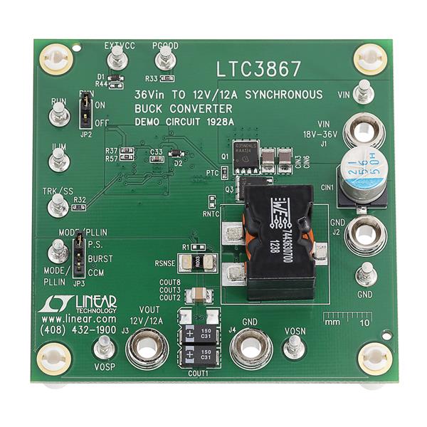 Analog Devices DC1928A ບົດທົດສອບຕົວຄວບຄຸມແຮງດັບໄຟຟ້າ - ຕົວຄວບຄຸມແຮງດັບໄຟຟ້າປ່ຽນສະຖານະ LTC3867EUF - 18V ? Vin ? 36V; | EMIN.COM.LA