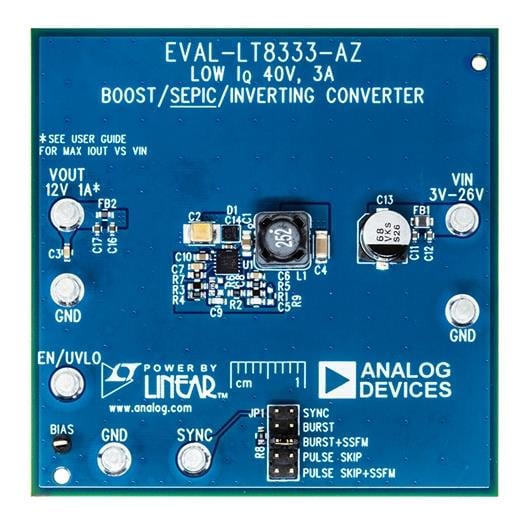 Analog Devices EVAL-LT8333-AZ ຊຸດທົດລອງ Boost, Inverting, SEPIC LT8333 Eval Kit, 3-26VIN 12VOUT 1A SEPIC | EMIN.COM.LA